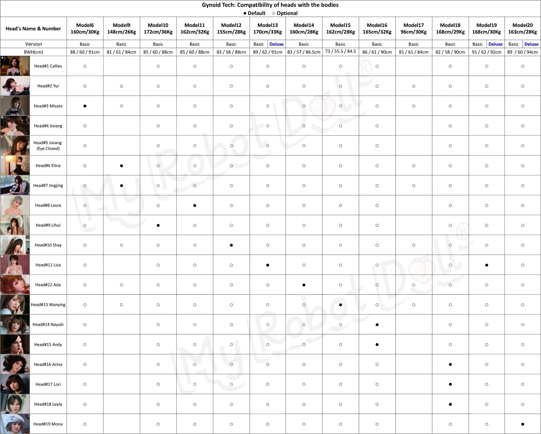 The chart below shows the eyes, heads, and bodies compatibility of Gynoid dolls: