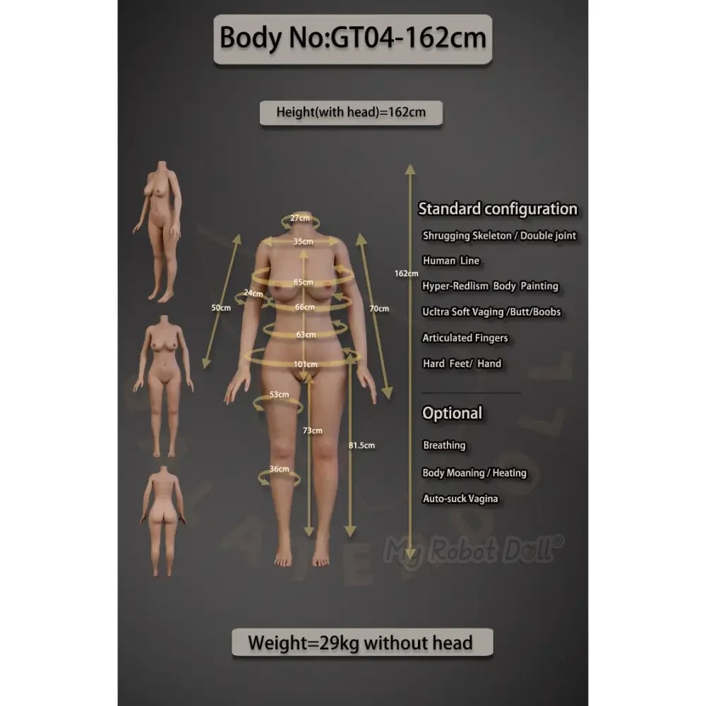 We also don’t recommend the use of dolls’ electronic options such as the automatic sucking vagina option or the moaning option. Those gimmicks are randomly working, break easily, and client feedback is generally negative. Electronic options such as the automatic sucking vagina option that interact with body parts can cause serious injuries. Please use those options at your own risk. We do not provide any after sales service for dolls’ electronic options.